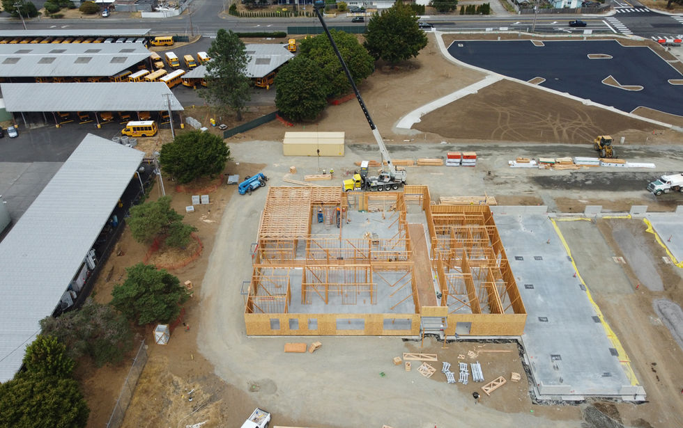 Panelized building offsite and delivered with trucking services. This building is a hub station for the public school services.
